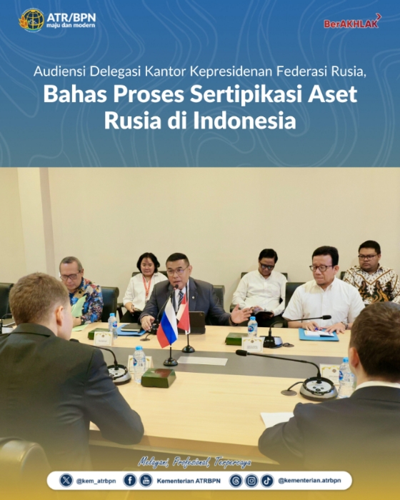 Wamen Ossy mengimbau agar pihak Kantor Kepresidenan Federasi Rusia menyiapkan berkas-berkas pendukung, termasuk menginventarisasi aset-aset milik Federasi Rusia agar progres sertipikasi berjalan dengan lancar.