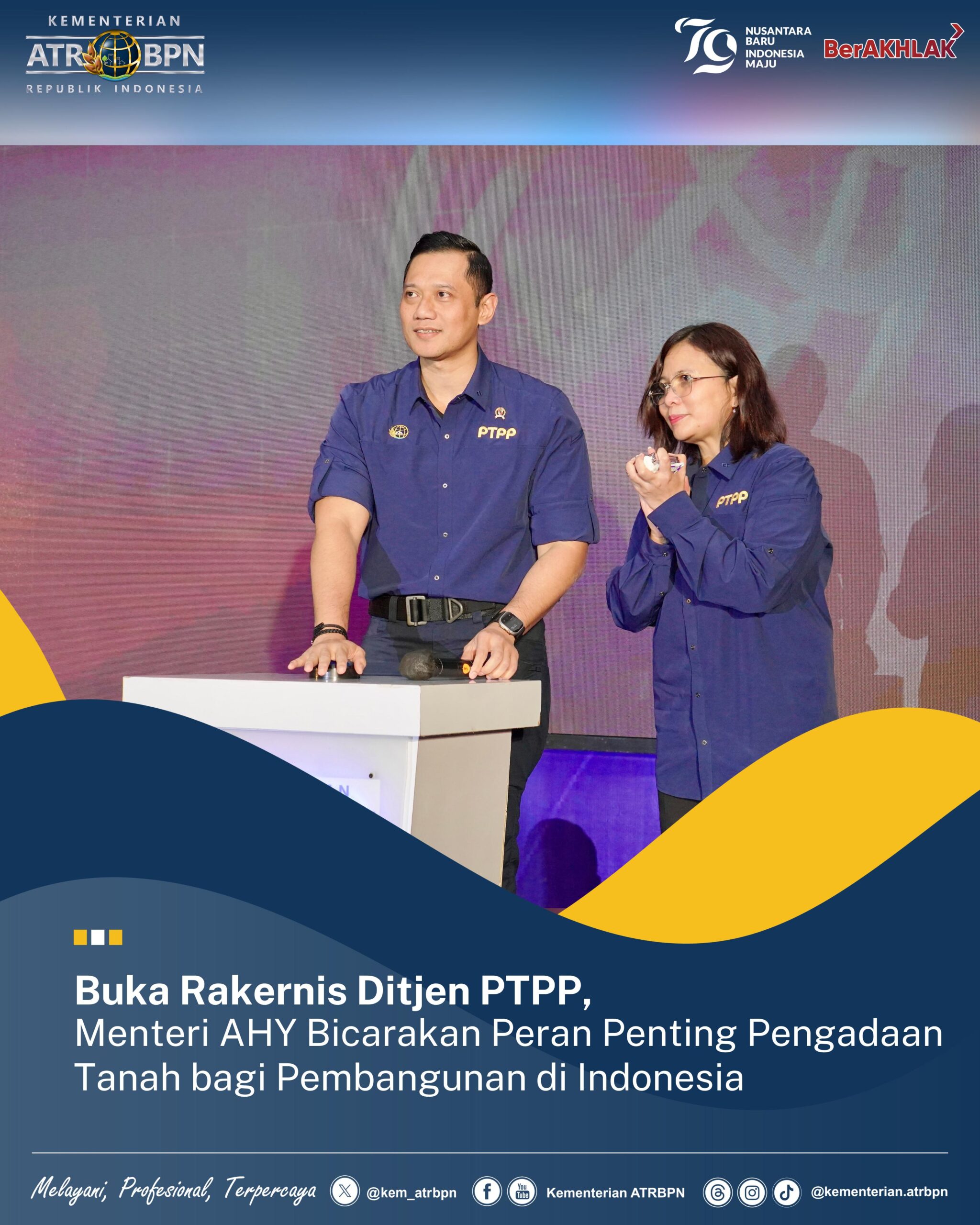 “Kami di sini seluruh Penggawa Pengadaan Tanah dan Pengembangan Pertanahan berkumpul menjadi satu, mengharapkan dukungan, bimbingan, dan arahan dari Pak Menteri AHY agar program-program Pengadaan Tanah dan Pengembangan Pertanahan senantiasa berjalan dengan baik,” pungkas Embun Sari.