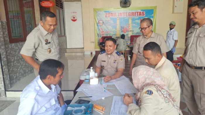 Kepala Kantor Pertanahan Kabupaten Sampang, Bapak Prasetya, S.T., M.Eng Saat Mengikuti Pemeriksaan Kesehatan Sebelum Mengikuti Donor Darah dari Petugas PMI Sampang.