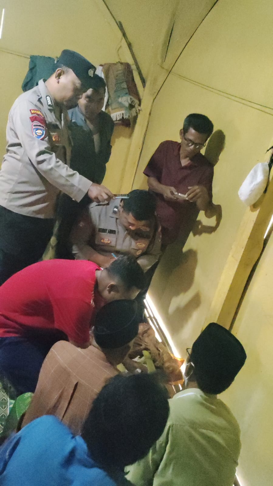 Selanjutnya ia mengumumkan penemuan itu melalui pengeras suara di kampung agar diketahui warga sekitar, sekaligus mempersiapkan proses pemakaman.