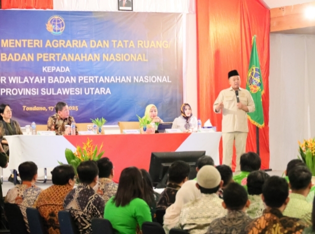“Dari sisi sistem, seluruh proses bisnis harus disederhanakan dan didukung oleh teknologi informasi. Dari aspek SDM, jabatan akan diatur berdasarkan jenjang karier yang transparan dan berbasis meritokrasi,” ungkap Menteri Nusron saat memberi pengarahan ke jajaran Kantor Wilayah (Kanwil) BPN Provinsi Sulawesi Utara (Sulut), di Minahasa, Kamis (17/07/2025).