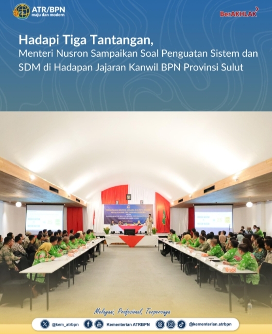 Di samping penguatan sistem dan SDM, Menteri Nusron juga mengimbau seluruh jajarannya, termasuk di Sulut untuk lebih terlibat dalam hal komunikasi publik. Terlebih, di tengah era _post-truth_, yakni era di mana informasi palsu lebih cepat menyebar daripada fakta.