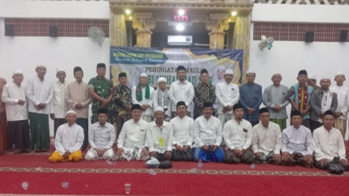 Hadiri Maulid Nabi Muhammad SAW, Wabup Mahfudz Disambut hangat Jama’ah Masjid Asy-Syuhadak