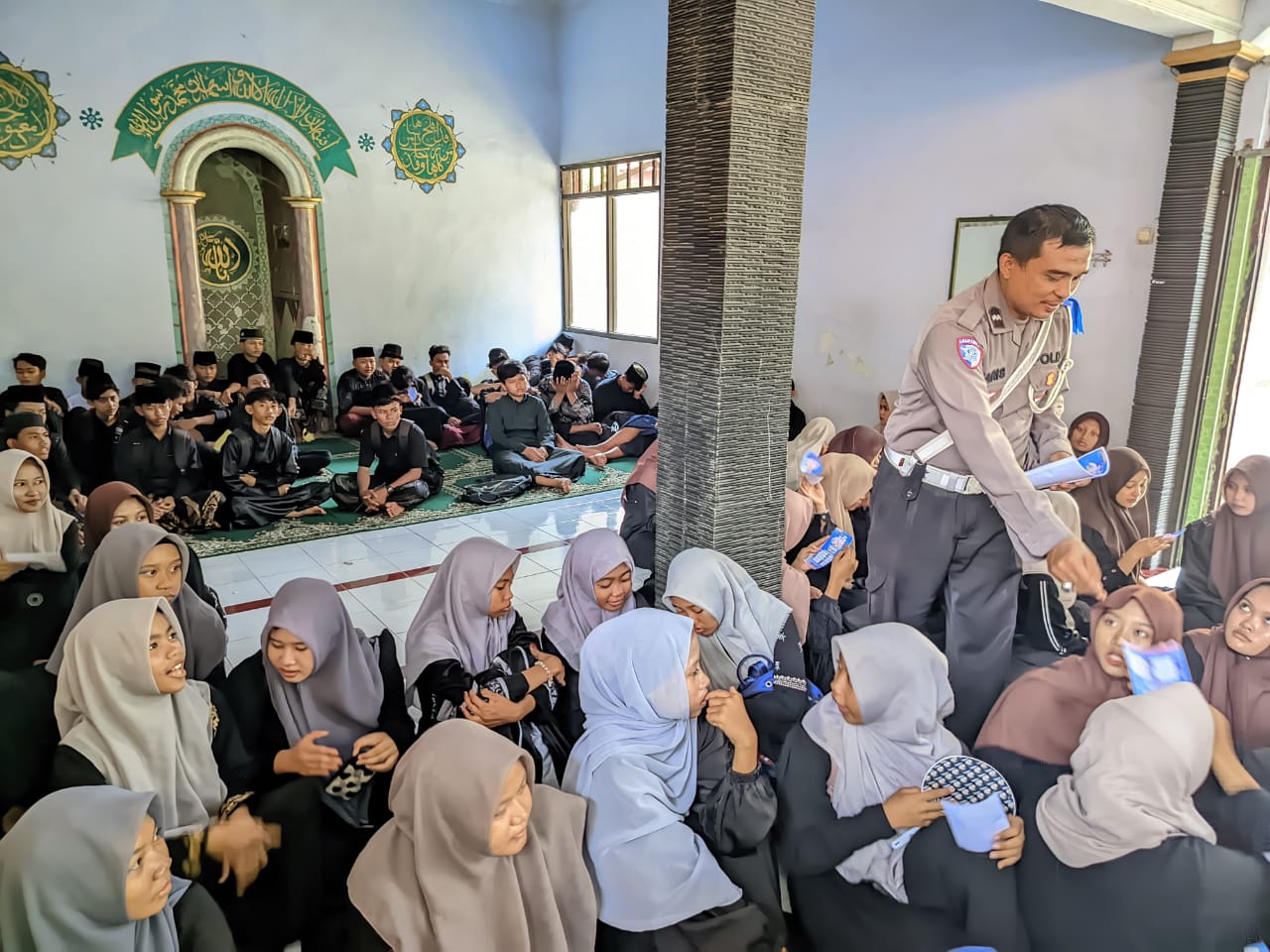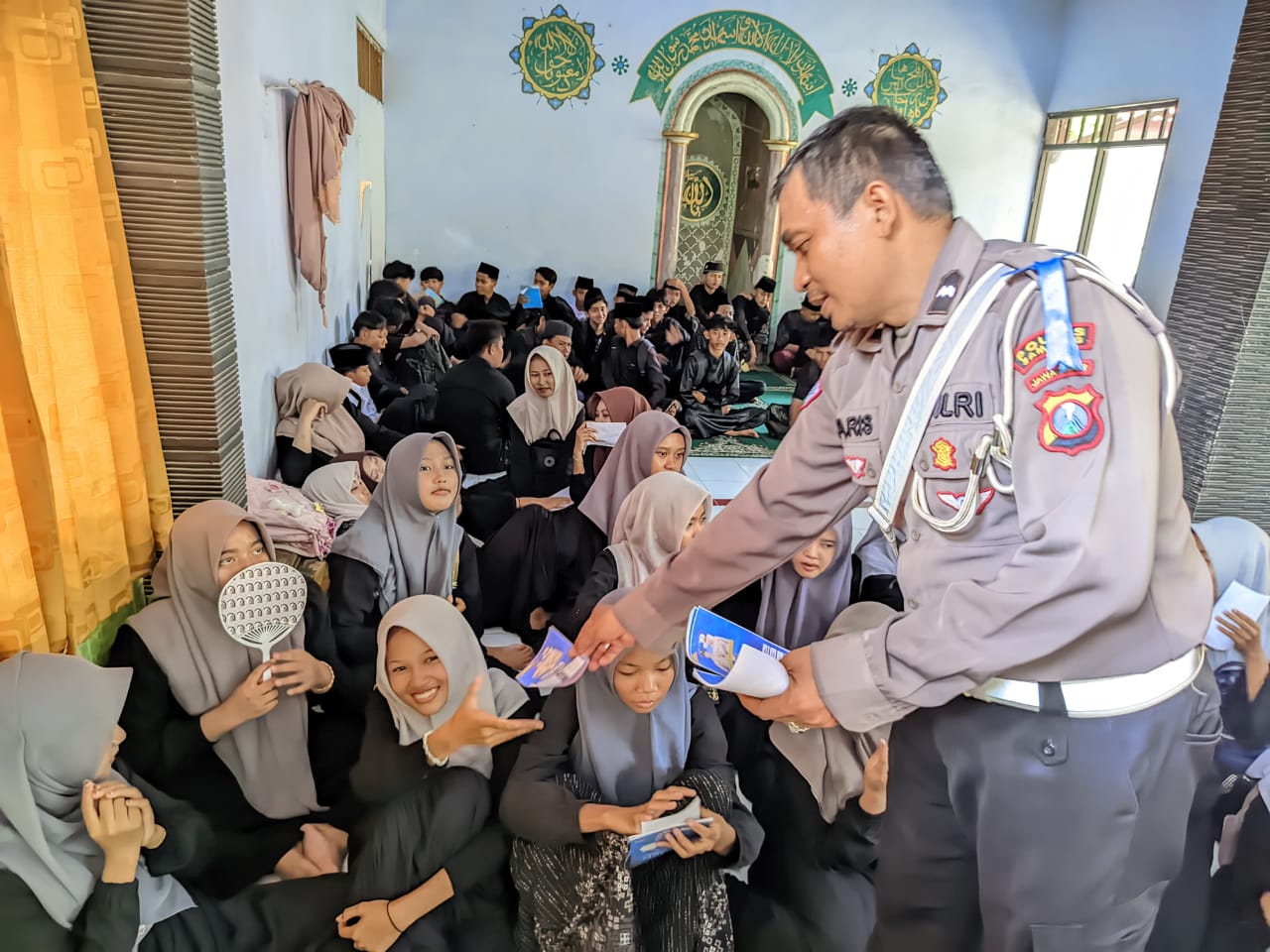 Sosialisasi diisi dengan himbauan tertib berkendara kepada para santri untuk mewujudkan Keamanan, Keselamatan, Ketertiban dan lancar berlalu lintas (Kamseltibcarlantas).