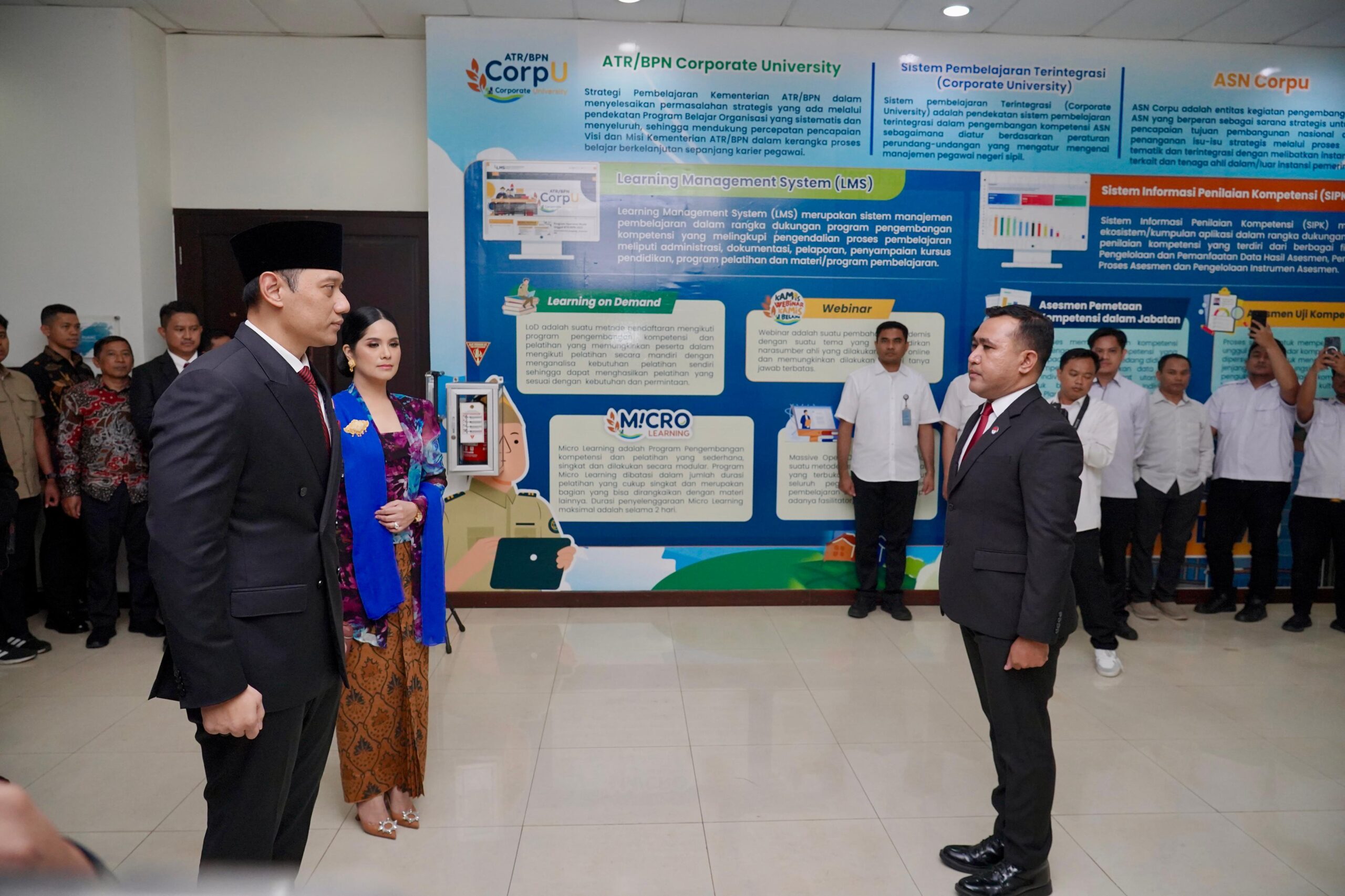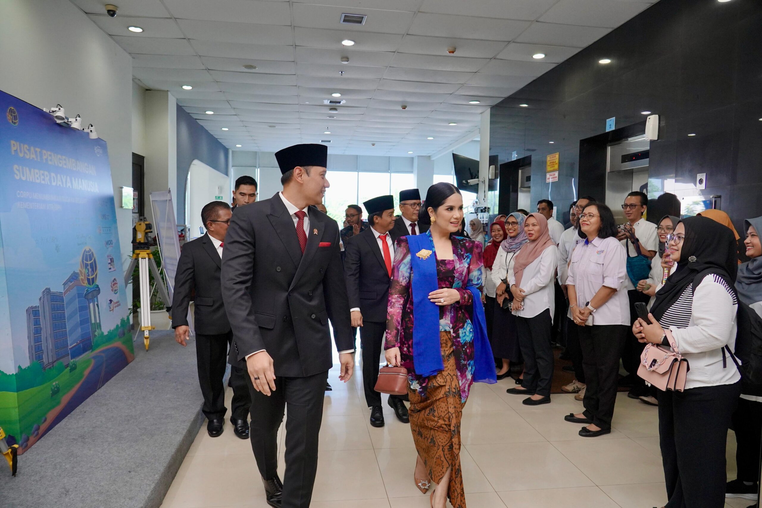 Menteri AHY Bersama Istri, saat akan melantik 327 pegawai yang terdiri dari 310 Pejabat Administrator dan 17 Pejabat Fungsional pada Rabu (18/09/2024).