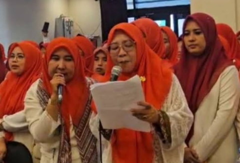 Ketua Suara Perempuan Sampang (SPS), Nyai. Hj. Innani Almukarromah Bersama Seluruh Anggota Yang terdiri berbagai Elemen Perempuan Sampang.