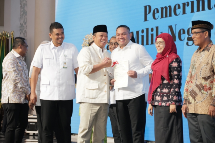 Menteri Agraria dan Tata Ruang/Kepala Badan Pertanahan Nasional (ATR/BPN), Nusron Wahid, menyerahkan 875 sertipikat tanah dalam kunjungannya ke Provinsi Sumatera Utara (Sumut).
