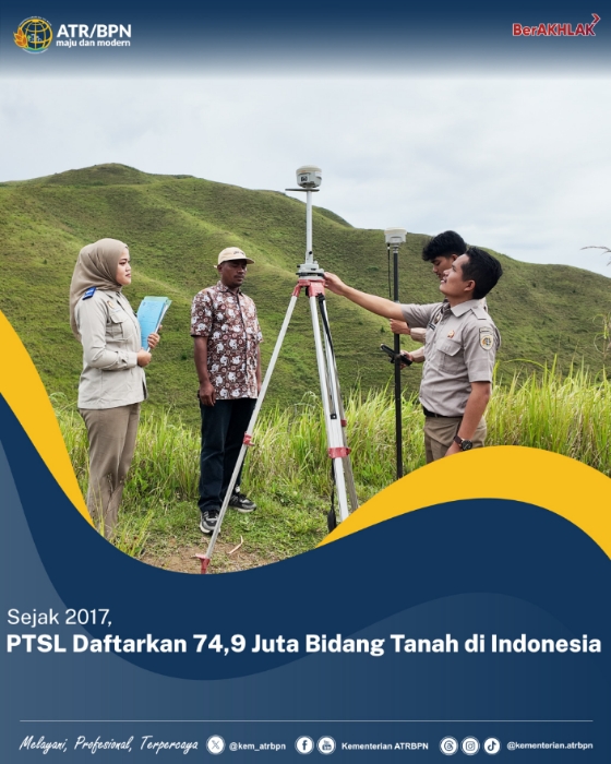 Menindaklanjuti hal tersebut, Menteri Nusron beserta jajaran Kementerian ATR/BPN terus berupaya mendorong terdaftarnya 5,1 juta bidang tanah atau setara 4,1% bidang tanah di tahun 2025. Upaya ini sebagai bentuk komitmen dalam menjalankan salah satu tugas utama Kementerian ATR/BPN yakni legalisasi aset di bidang pertanahan melalui pelaksanaan program PTSL.