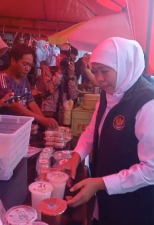 Gubernur Khofifah Indar Parawansa Menyempatkan Borong Dagangan Pedagang UMKM Sampang Untuk Diberikan Ke Puluhan Abang Becak.